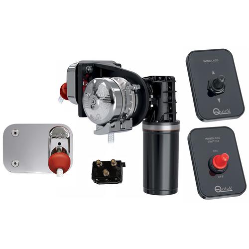 Ankarspelspaket från Quick. Ankarspelet är tänkt att monteras innanför akterspegeln men är möjlig att montera även på andra platser då motorn går att vinkla i 45-graders steg. Installationen är flexibel. Ankarspelsmotorn finns som X- och Y-variant vilket innebär linhjul till styrbord eller babord om motorn - sett från när man står bakom båten på t.ex. badbryggan. Detta paket innehåller en Y-variant där linhjulet sitter till styrbord om motorn. Vid installation ska det finnas gott om utrymme vid sidan av linhjulet samt under motorn vilket avgör vilken variant som passar bäst för just din båt oavsett vilken sida du monterar ankarspelet på.