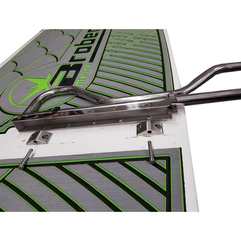 Brobergs självbalanserande båtlyft är gjord av rostfritt syrafast stål av högsta kvalitet. Lyften är tvådelad och monteras på badbrygga. Den hanteras enkelt av en person och gör det möjligt att snabbt ta upp en jolle med motorn på. Båtlyften kan tas bort med några enkla handgrepp och allt som blir kvar på badbryggan är då fyra diskreta fästen. Levereras komplett med två ledade armar och fyra fästpunkter med snabbsprintar.