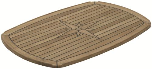 EUDE Nautic Classic Comfort, högkvalitets bordsskiva tillverkad av massiv teakribb limmad på en epoxy inbakad plywoodskiva, nåtade skarvar. All teak kommer från statligt kontrollerade teakplantager på Java.