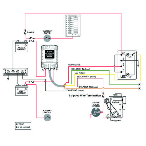 Reläet ombesörjer automatisk laddning av två separata batteribanker. Reläet isolerar startbatteri från förbrukningsbatteri så att man ej står utan startkraft. Den inbyggda brytaren kan även tvinga igenom gemensam kraft från båda batteribankerna vid extra strömbehov.