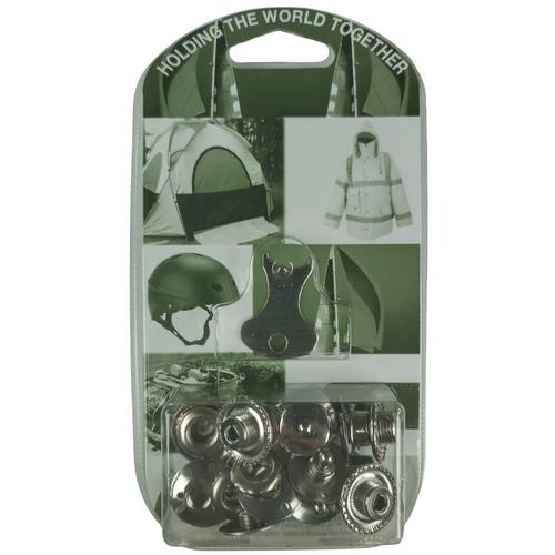 Tomaxknapp för tyg. Avsedd för att fästa samman kapell. Satsen innehåller 4 stycken knappar.