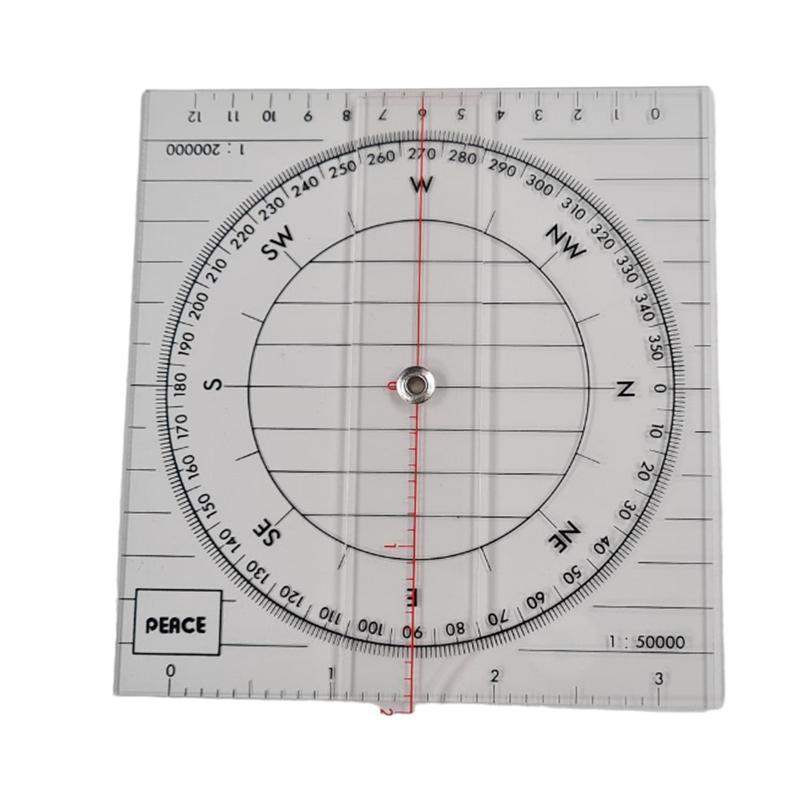 Kurslinjal med lång arm i klar plast. För enkel utläggning av kurs.