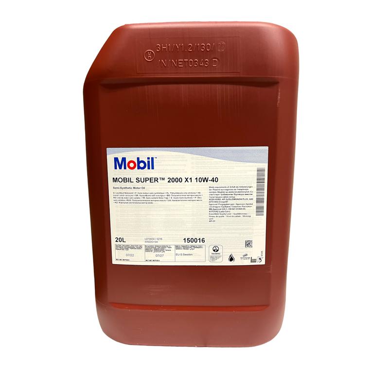 Mobil Super 2000 10W40 delsyntet finns i 1, 4 och 20L-förpackningar och är enkel att hantera och dosera för regelbundet underhåll.