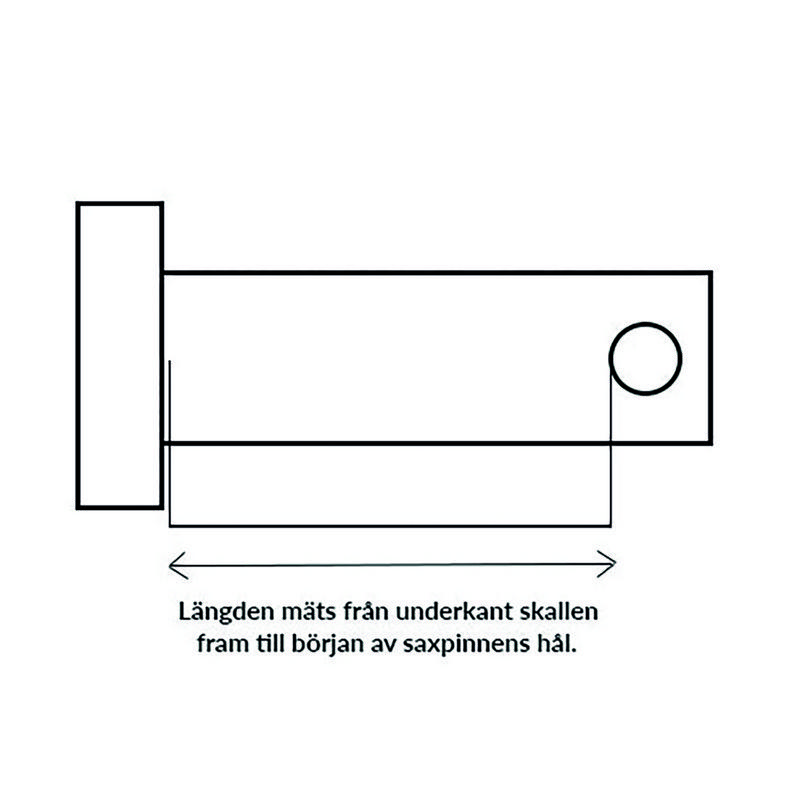 Längden mäts från underkant av skallen till början av saxpinnens hål.