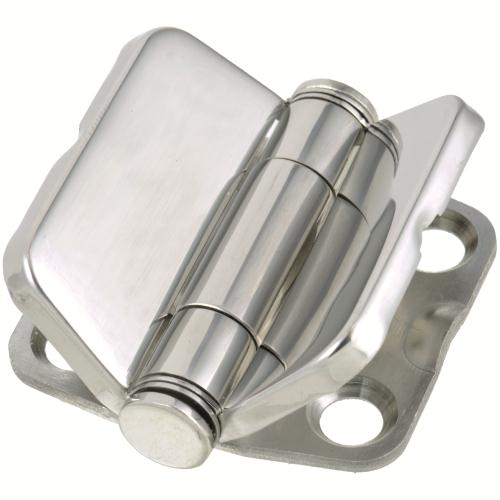 Unikt gångjärn med helt dolda skruvskallar tack vare en patenterad lösning. Efter montage trycks locket ner, som då fastnar. Tillverkad i högglanspolerat rostfritt syrafast stål.