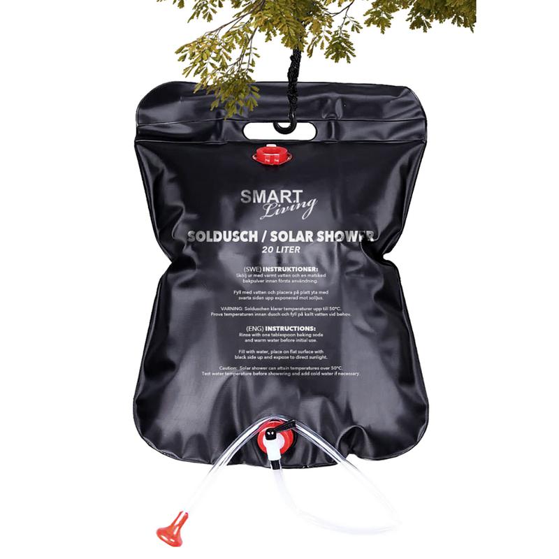 Utedusch tillverkad i PVC. Avsedd för upphängning och soluppvärmning. Självfall. Levereras med kran, slang och duschmunstycke.